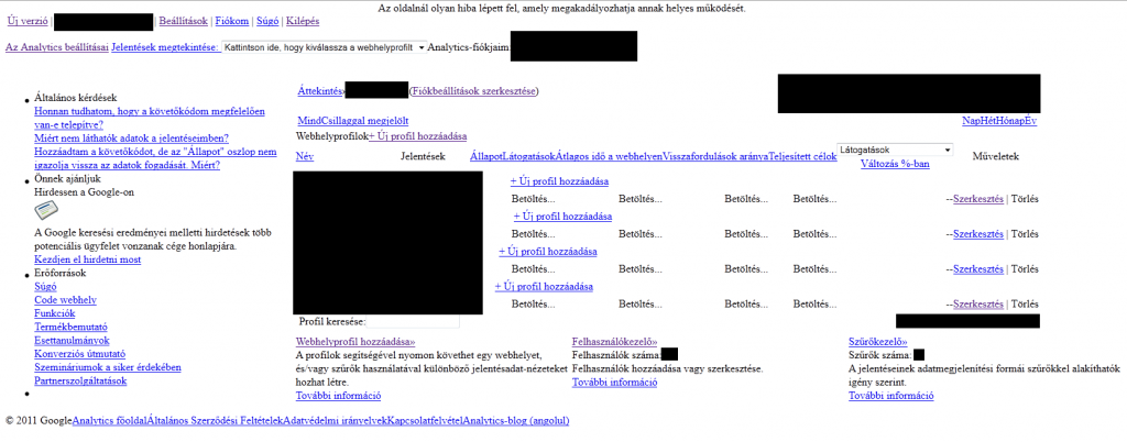 Akkor kezdett igazán gyanússá válni, hogy valami nem ok, amikor a Google Analytics nem töltődött be rendesen, se az új, se a régi verzió. A képen látható, hogy mit láttam: