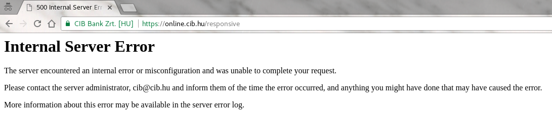Az internetbank (https://online.cib.hu/responsive) pedig „Internal Server Error”-t ad:
