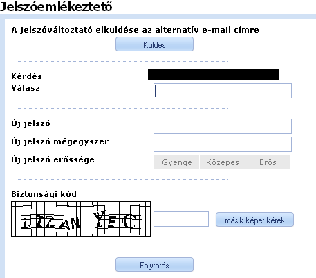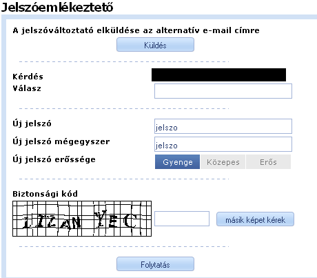 Ha a megadott felhasználói névhez tartozik jelszóemlékeztető, akkor a következő űrlap jelenik meg: