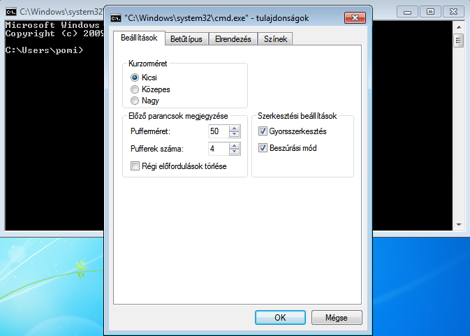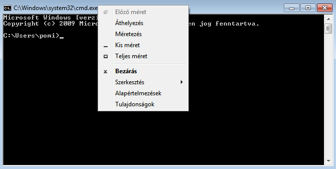 1. Kattints a parancssor ablak keretére jobb gombbal, majd válaszd ki a Tulajdonságokat