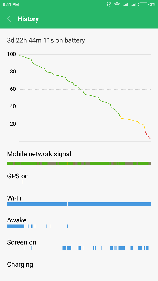 Átlagos használat, főleg netezés (wifi+mobilnet vegyesen), zenehallgatás és némi telefonálás, 3 nap 22 órát bírt, egész jó:
