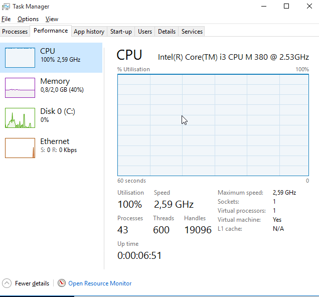 Nem kapott túl sok erőforrást, de legalább nyugalmi állapotban tisztességesen kihasználja azt az 1 vCPU-t: