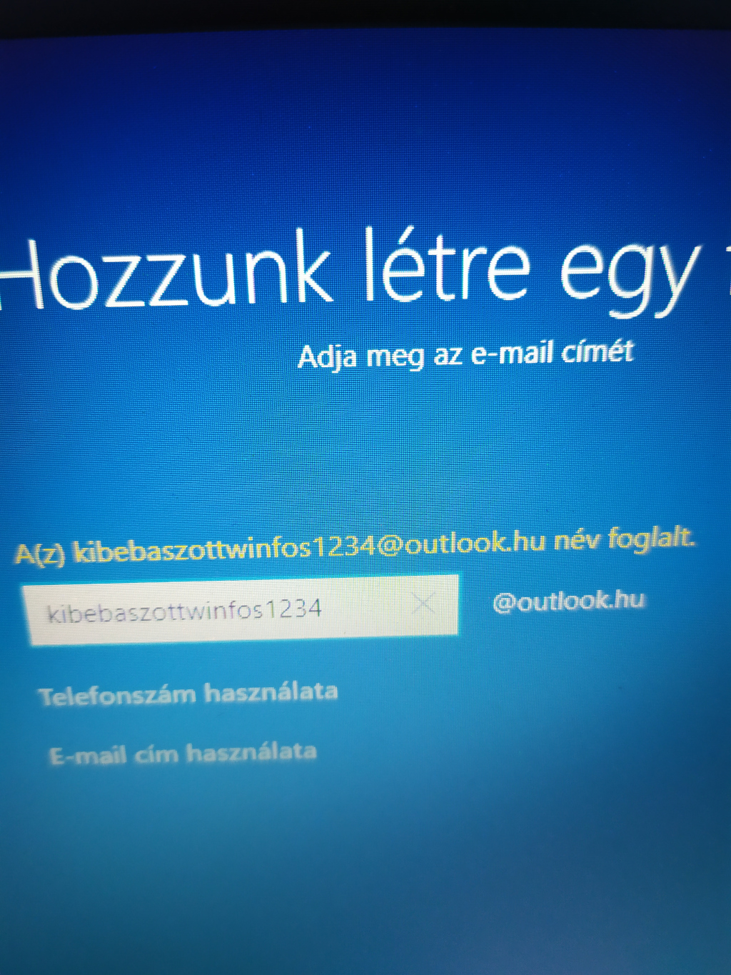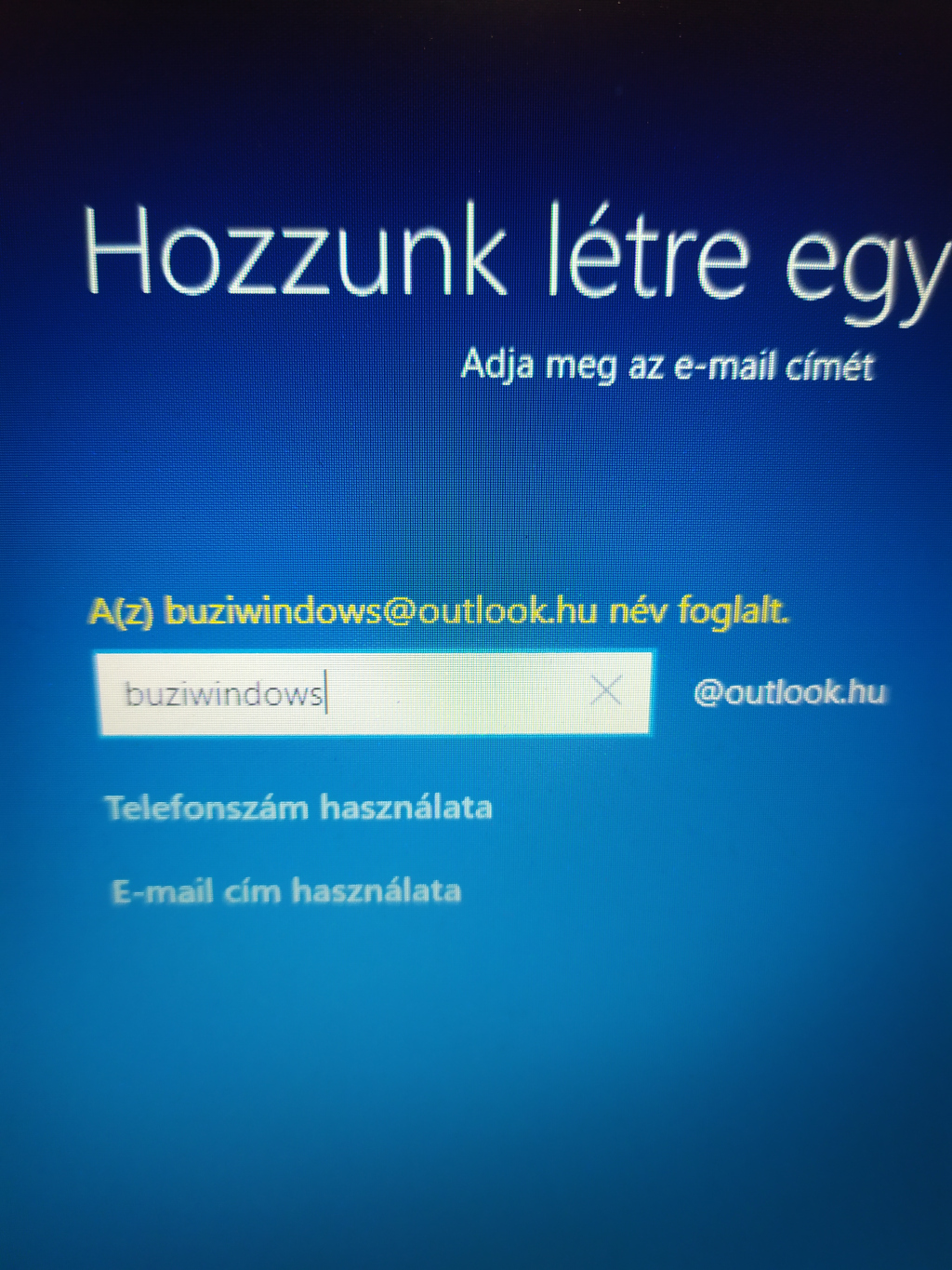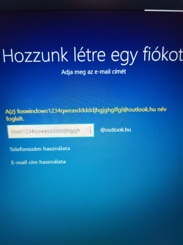 Eszembe jutott pár név, és azmondjuk szerintem teljesen normális, hogy a winfos@outlook.hu, szarwindows@outlook.hu vagy a buziwindows@outlook.hu foglalt már,