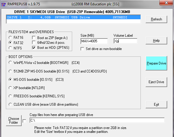 4, Kattints a Prepare drive gombra, majd ha végzett zárd be az rmprepusb-t (Exit)!